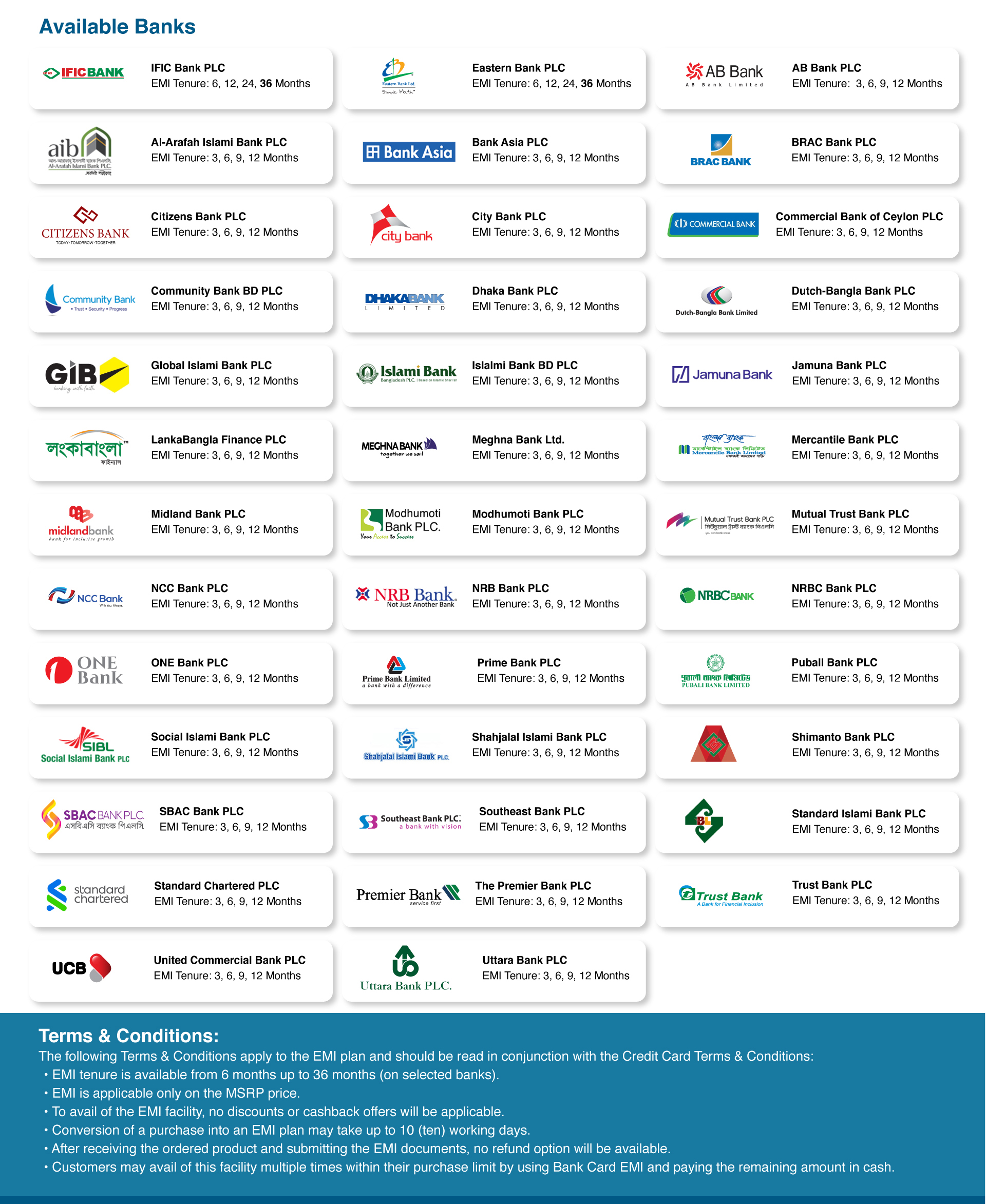 Purchase a Walton AC using credit cards from the maximum number of partner banks and enjoy up to 36 months of 0% interest EMI facilities.